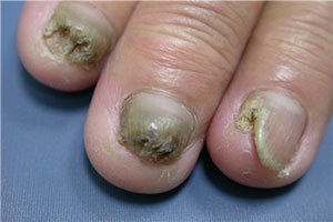5、个人因素:不注意个人卫生、患有手足癣的患者、长期与化学制剂接触的人、指趾甲受外伤等,都可能导致真菌侵入伤口而引起灰指甲。