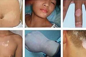 2、皮肤外伤:烧伤、冻伤、烫伤、割伤等外伤会导致伤口处的T淋巴细胞免疫功能受损,使机体长期处于高度“应激状态”,从而导致体内的神经内分泌系统功能紊乱。如肾上腺素突然过量分泌而消耗了大量的酪氨酸,从而大大降低了黑色素的合成代谢。