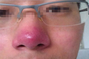 2、影响形象:如果酒糟鼻在前二期不及时治疗就容易导致鼻部肥大,形成鼻赘,状如癞蛤蟆趴在脸上,极其难看且极其伤自尊。