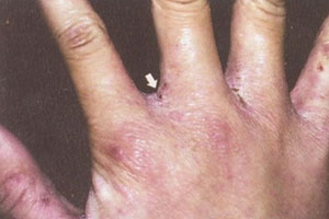 4、湿疹:湿疹为一过敏性疾病,属IV型变态反应。湿疹的原因和诱发的因素常因个体因素和疾病的不同阶段而异,因此不易确定。临床上以瘙痒显著,对称性分布,急性以丘疱疹为主,有渗出倾向,慢性常以苔藓样改变为主及反复发作、易成慢性为其特征。