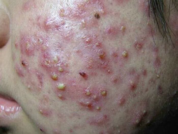 4、痤疮:皮肤呈油性,面部有微生物,较多见如棒状杆菌、遗传这四种原因造成痤疮的产生。虽然痤疮是有自愈倾向的疾病,但是痤疮本身以及痤疮治疗不及时引起的瘢痕可以严重影响痘友的生活质量,造成痘友的精神压力和经济负担,需引起关注。