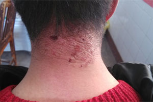 3、神经性皮炎:主要发生于暴露易摩擦部位,一年四季皆可发病,但以冬季多发或者加重。在中医属于“皮疴”等范畴。多见于青壮年,主要见于颈后、两侧、肘后、骶尾以及外阴等处。病起之初有瘙痒而无皮损,以后因瘙抓出现抓痕、脱屑、血痂,以后逐渐苔藓化,形如皮革,坚厚无比。
