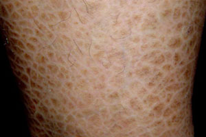 7、鱼鳞病:鱼鳞病也是冬季特别容易出现的一种皮肤病,特别是鱼鳞病患者,到了冬天,病情会发展的比较严重,冬季皮肤病一般主要是因为干燥所引起的,如皮肤瘙痒症就是由于皮肤干燥导致的,此症无论男女老幼都可发病。
